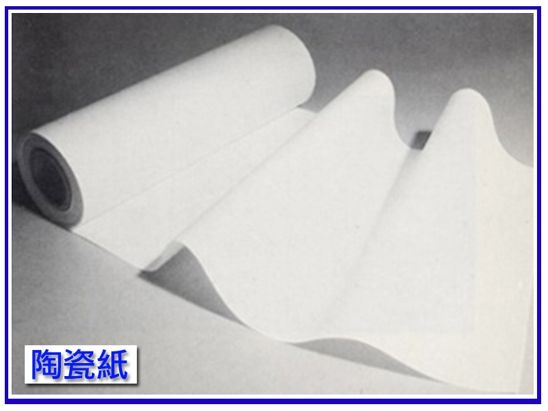 耐火陶瓷纖維紙係以耐高溫之陶瓷纖維經纖維分離篩選,剃除未纖維化之顆粒以製作紙之方式成型。其組成物有三氧化二鋁46%、二氧化矽54%(Al-Silica)及潻加少量之有機膠合劑,如Latex, Acrylic或Silicon,其有機膠於300℃時會完全分解揮發怠盡。