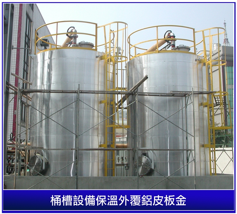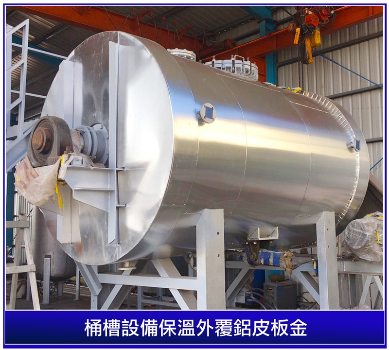 桶槽設備施作保溫板金可達到節約能源,為公司減少成本,亦可達到節能減碳保護地球。